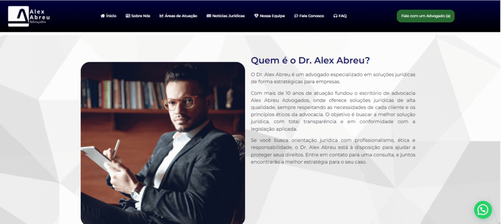 Este projeto apresenta o desenvolvimento do website para um Escritório de Advocacia especializado em Consultoria Estratégica. O objetivo central foi criar uma presença digital que comunicasse a visão global do escritório, destacando seu foco em segurança jurídica, tranquilidade e, principalmente, lucro para seus clientes.