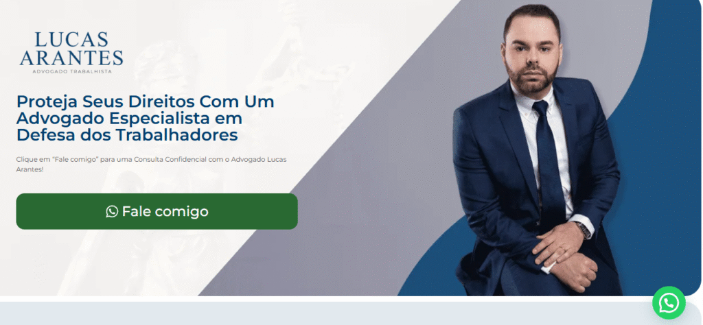 Projeto apresenta o desenvolvimento do website para Lucas Arantes, Advogado Trabalhista, com foco exclusivo na defesa dos direitos dos trabalhadores. O desafio foi criar uma plataforma digital que inspirasse confiança, empatia e acessibilidade, essenciais para um público que busca auxílio em momentos de vulnerabilidade.
