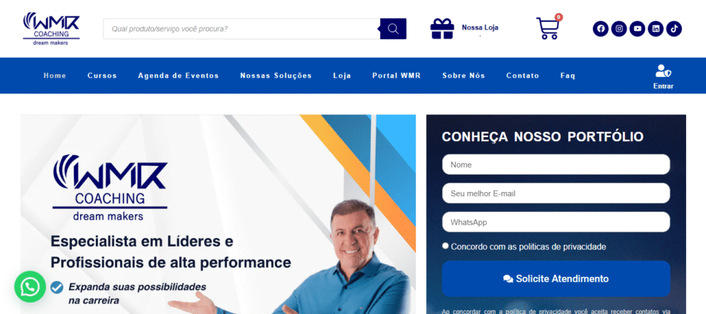 Este projeto apresenta o website institucional da WMR Coaching, um centro de excelência focado em transformação pessoal e desenvolvimento humano. O objetivo foi criar uma presença digital que refletisse a profundidade da sua missão e a solidez da sua equipe, composta por profissionais experientes com forte background empresarial.